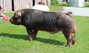 We have been scaling back and getting away from the showring. It’s just not what we do or want to do. Dad and I will always have a handful of showpig sows because we do enjoy working with youth and their projects. With that being said we will NEVER promote or breed slow growing, poor maternal sows that have to be babysitted. These handful of sows have to earn their keep. They work for us, not the other away around. WLLH Echelon is an interesting hog. Heavy boned, huge footed, and an incredibly flexible, angular skeleton. His dam was the 2nd best red sow to be here since I moved back to Indiana from college. She generated winners but more importantly she was a productive sow. WLLH Echelon 40-1 is a half brother to the Res. Champion Duroc gilt 2022 NJSS and he is a littermate to the Champion Duroc Barrow 2024 Georgia Jr. show. His first daughters are some of our best. Late July gilts that are running in a group of 30 weighing 275-300 lbs. We also have a son WLLH Higher that brings a lot of good in a little different package. WLLH Echelon 40-1 is generating hogs with growth, structure, and flexibility. Time will tell how good his daughters will be.
